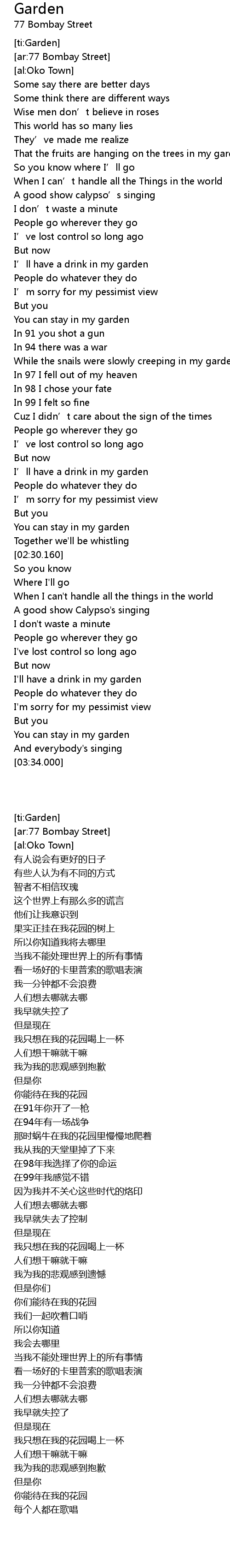 | [01:31.380] | While the snails were slowly creeping in my garden |