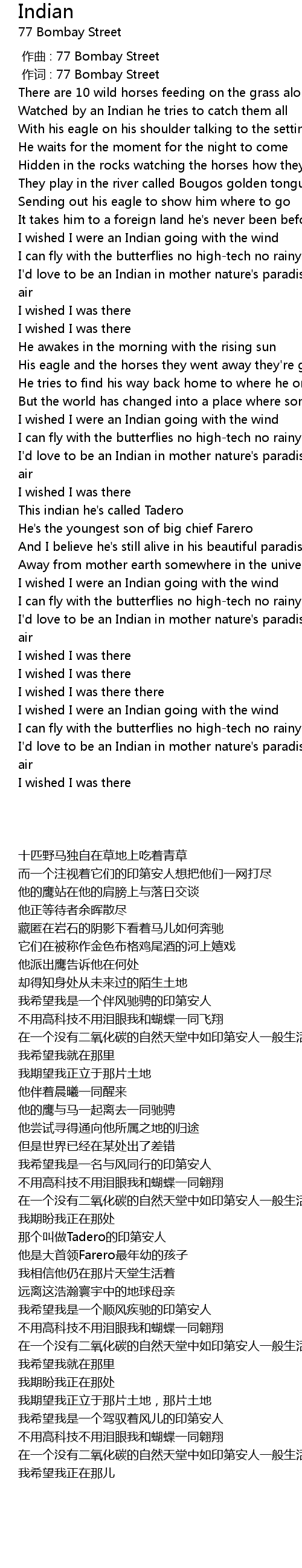 | [00:01.00] | 作词 : 77 Bombay Street |