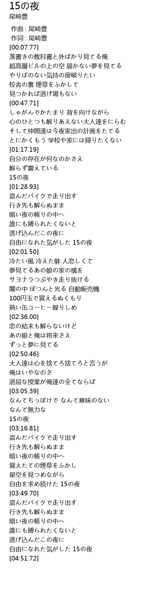 | [04:45.48] | 自由になれた気がした 15の夜 |