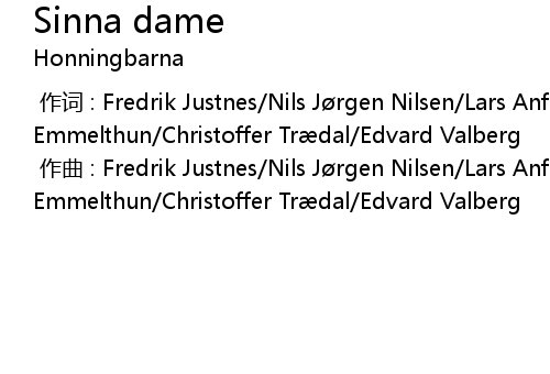| [00:00.000] | 作词 : Fredrik Justnes/Nils Jørgen Nilsen/Lars Anfrido Emmelthun/Christoffer Trædal/Edvard Valberg |