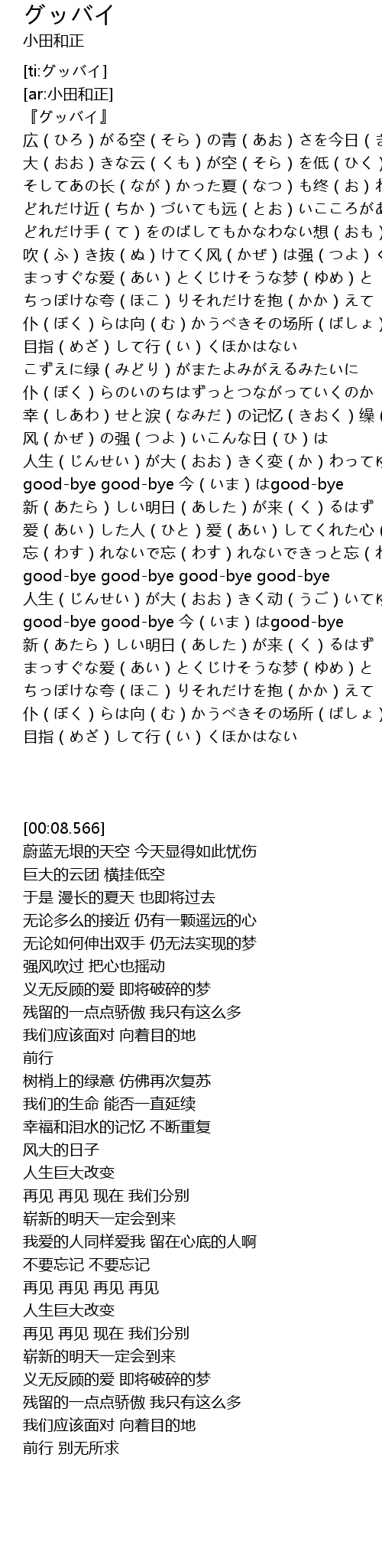 | [00:08.566] | 『グッバイ』 |