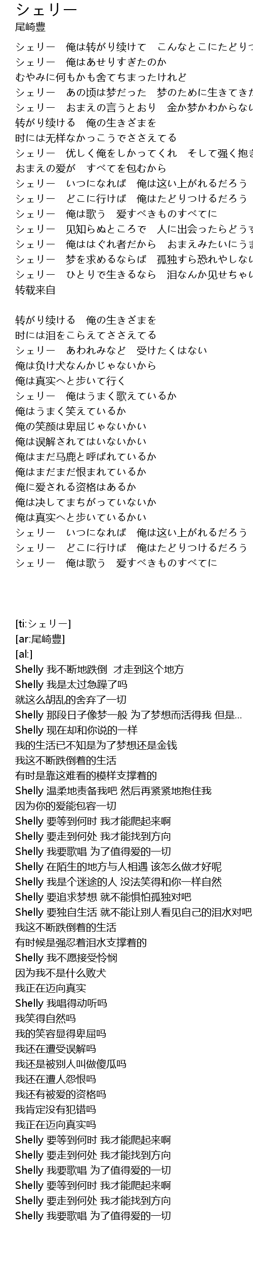 | シェリー あの顷は梦だった 梦のために生きてきた俺だけど | |