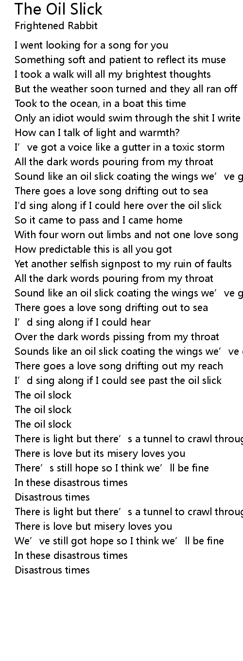 | Sounds like an oil slick coating the wings we' ve grown | |