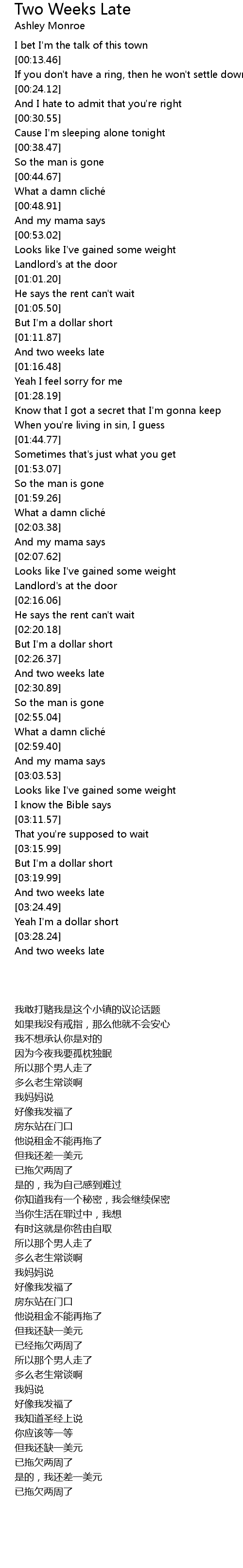 | [03:29.61] | And two weeks late |