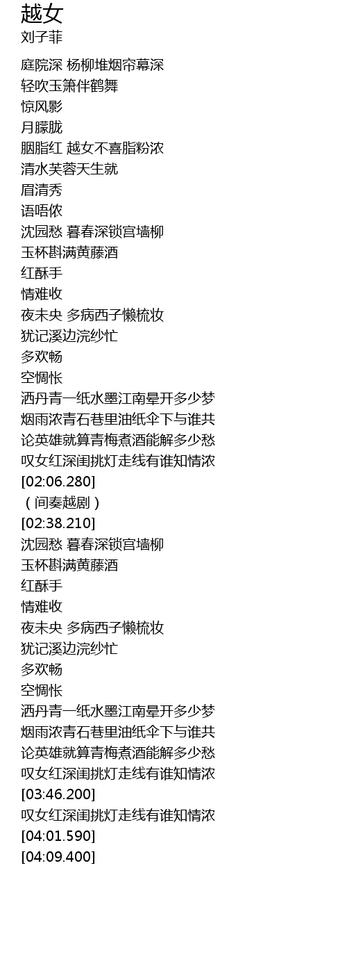| [00:43.530] | 胭脂红 越女不喜脂粉浓 |