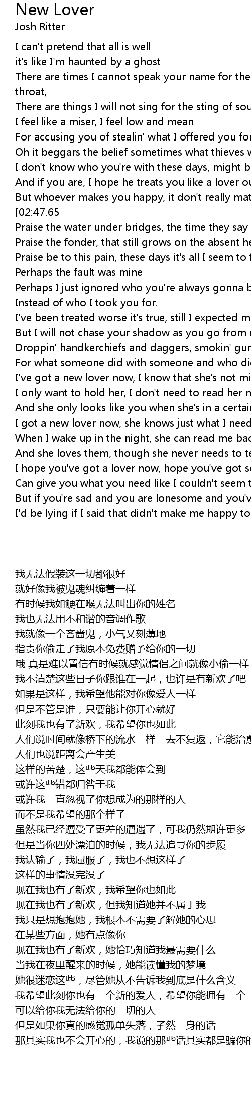 I've got a new lover now, I hope you've got a lover too. |