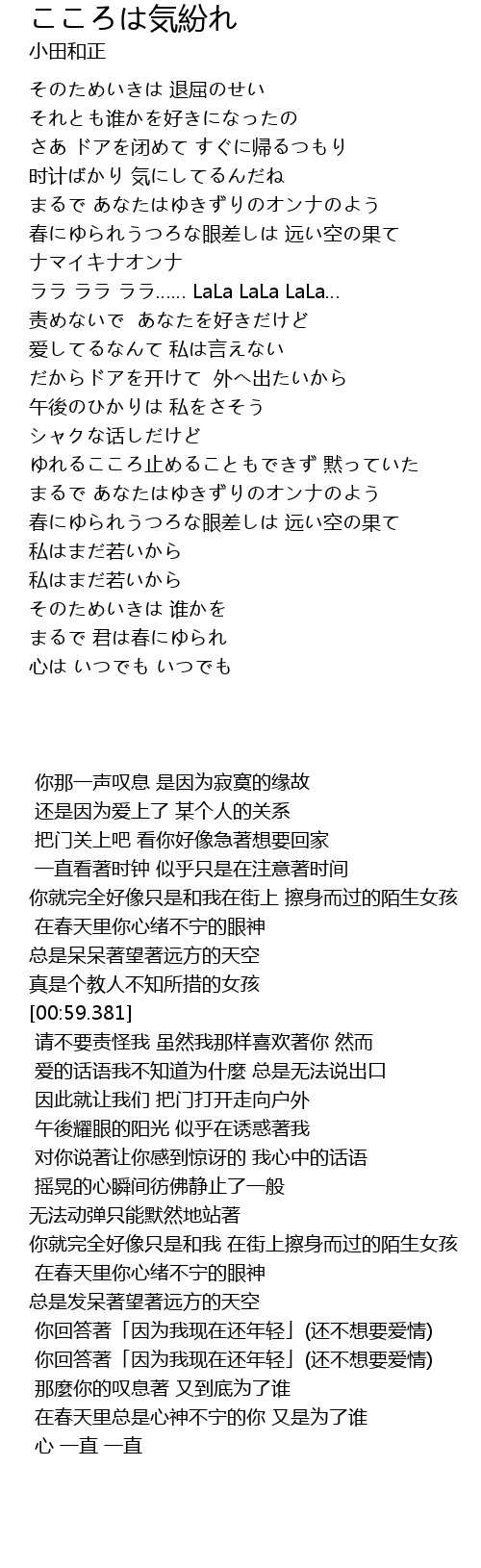 | [00:59.381] | ララ ララ ララ…… LaLa LaLa LaLa… |