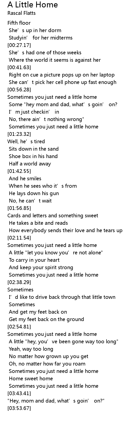 | [00:57.62] | Sometimes you just need a little home |