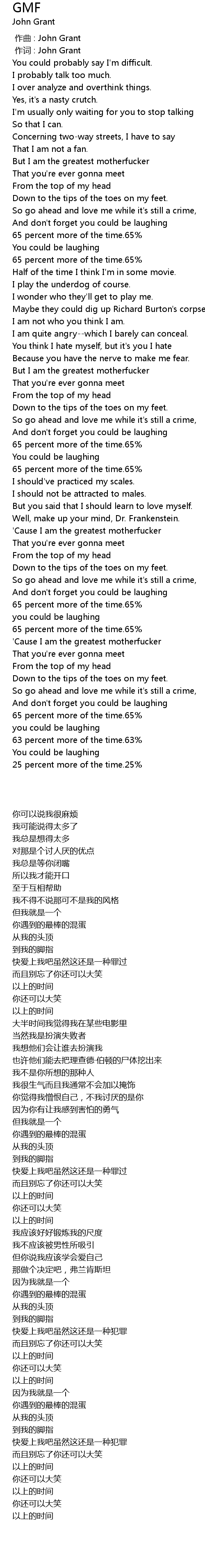 | [00:00.00] | zuo qu : John Grant |