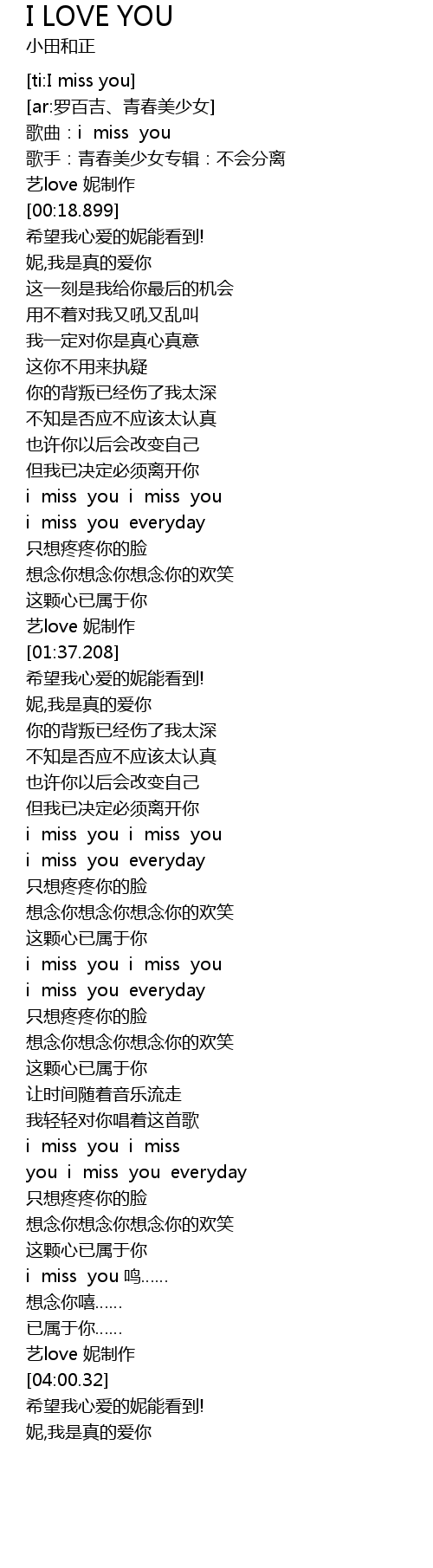 | [04:16.448] | ni, wo shi zhen de ai ni |
