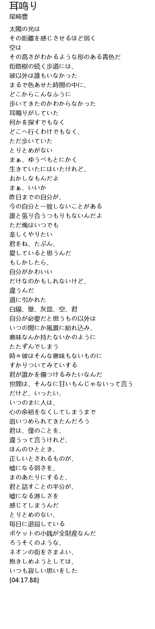 | [01:59.71] | 白線、壁、灰皿、空、君 |