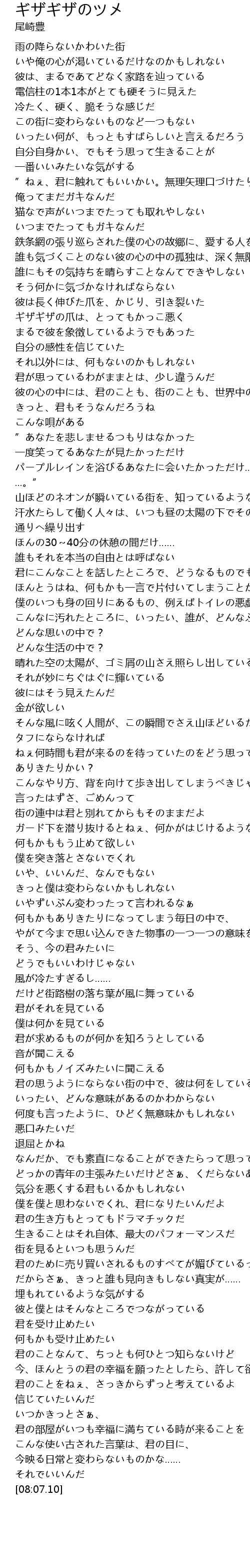 | [01:31.84] | ギザギザの爪は、とってもかっこ悪く |
