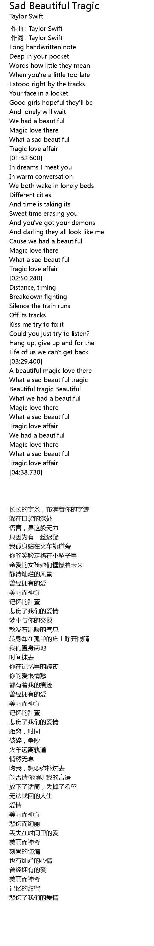 | [03:48.900] | Beautiful tragic Beautiful |