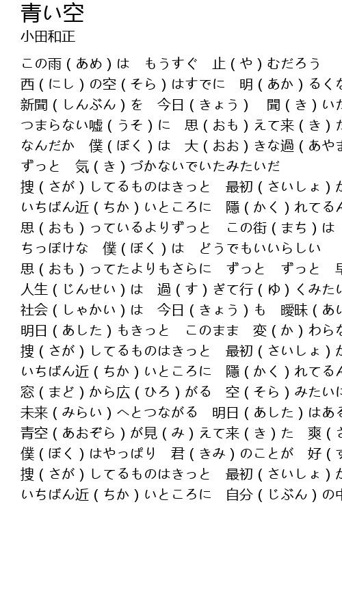 | [02:55.62] | 窓(まど)から広(ひろ)がる 空(そら)みたいに |