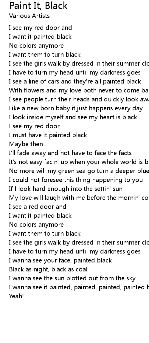 I wanna see it painted, painted, painted, painted black |