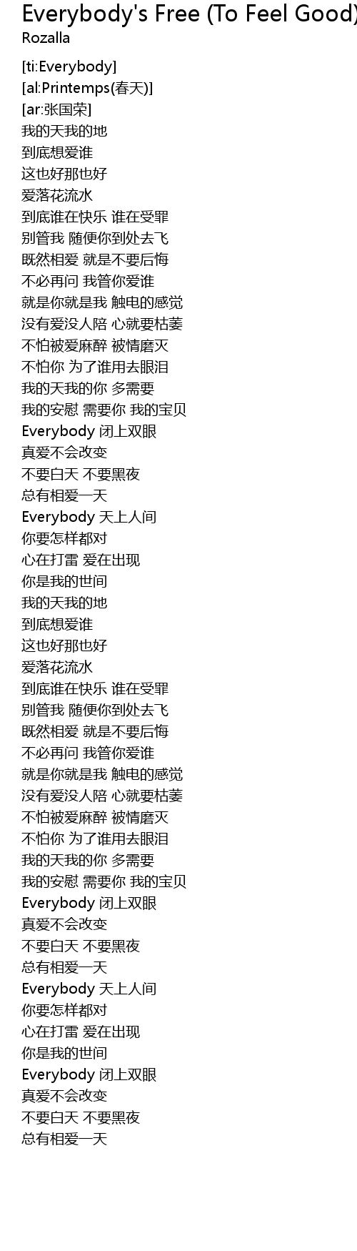 | [01:25.620] | Everybody tiān shàng rén jiān |