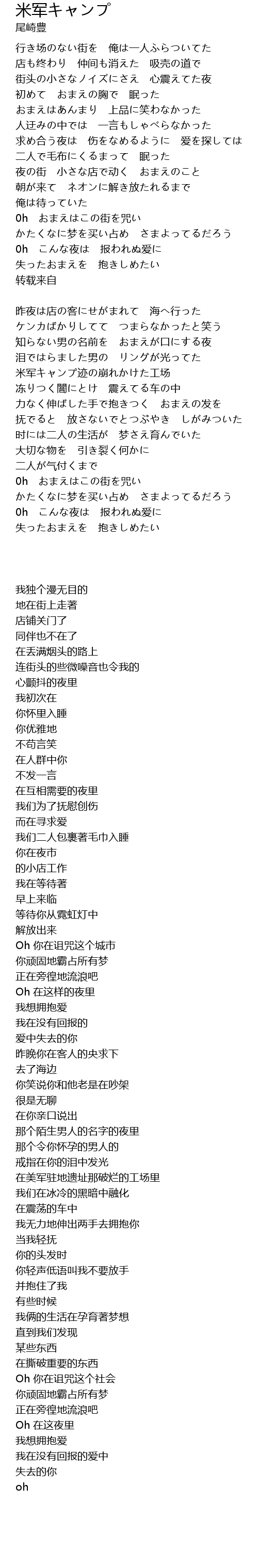 | 夜の街 小さな店で动く おまえのこと | |