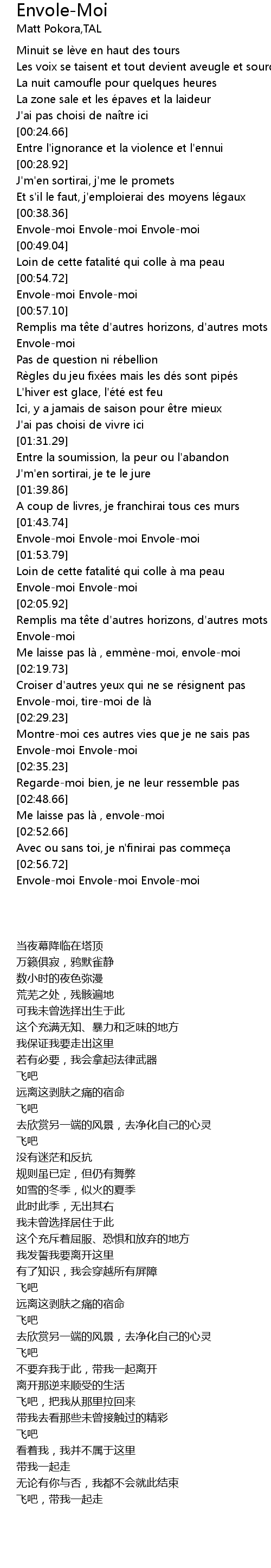 | [00:45.54] | Envole-moi Envole-moi Envole-moi |