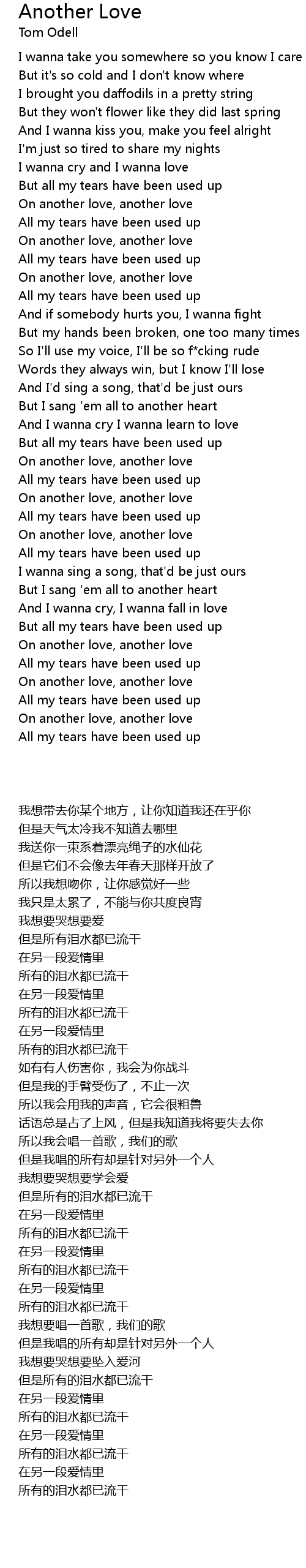 But all my tears have been used up |