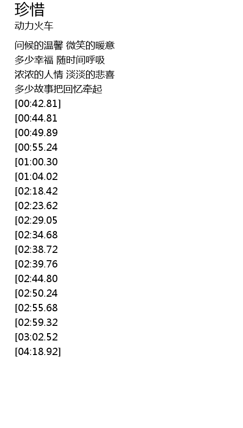 | [01:58.69][00:44.81] | 关怀的叮咛 祝福的真心 |