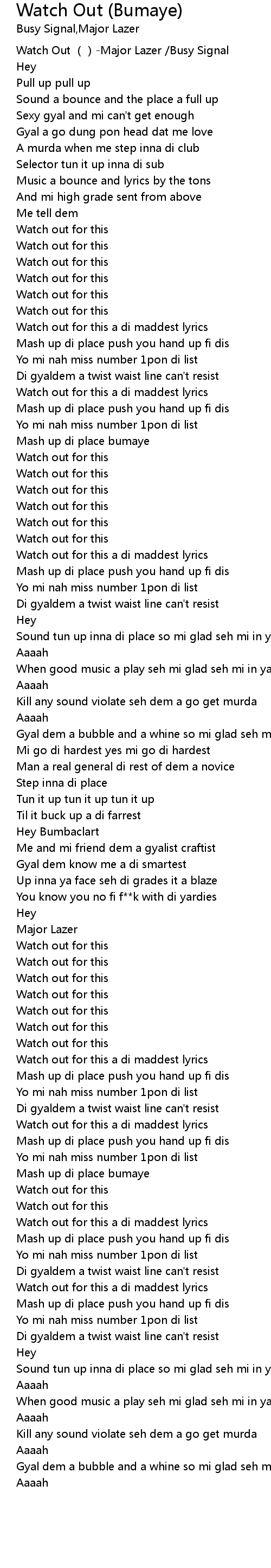 | [00:00.00] | Watch Out Major Lazer Busy Signal |