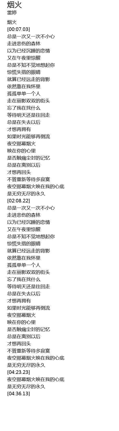 | [04:23.78] | 夜空那幕烟火映在我的心底 |