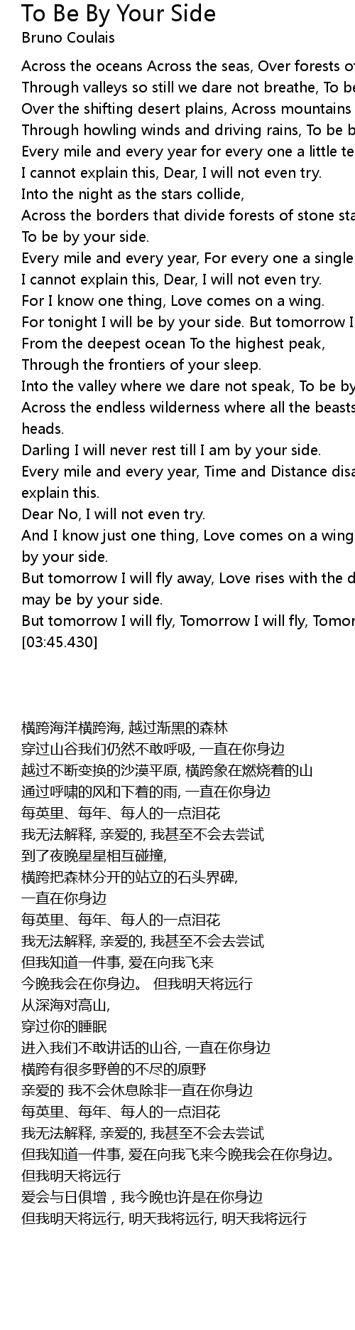 But tomorrow I will fly away, Love rises with the day and tonight I may be by your side. |
