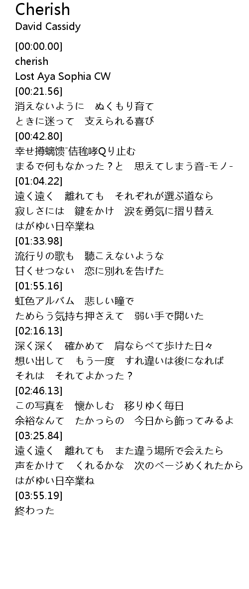 | [00:09.56] | cherish |
