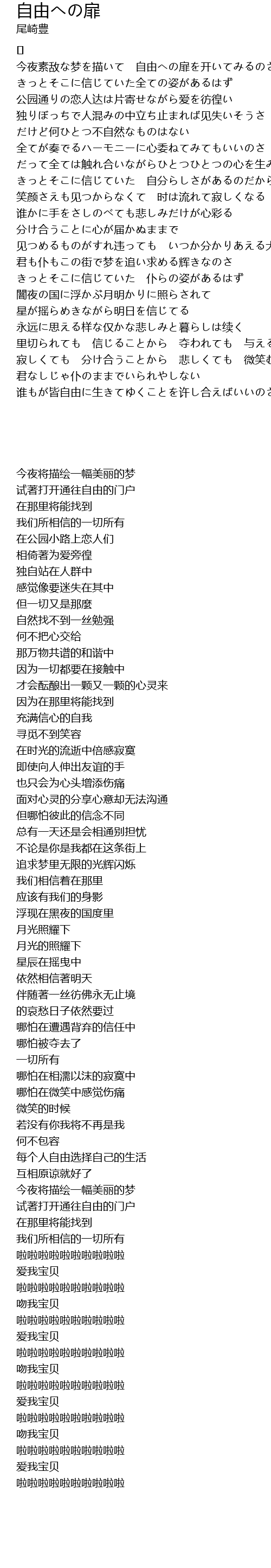| 今夜素敌な梦を描いて 自由への扉を开いてみるのさ | |