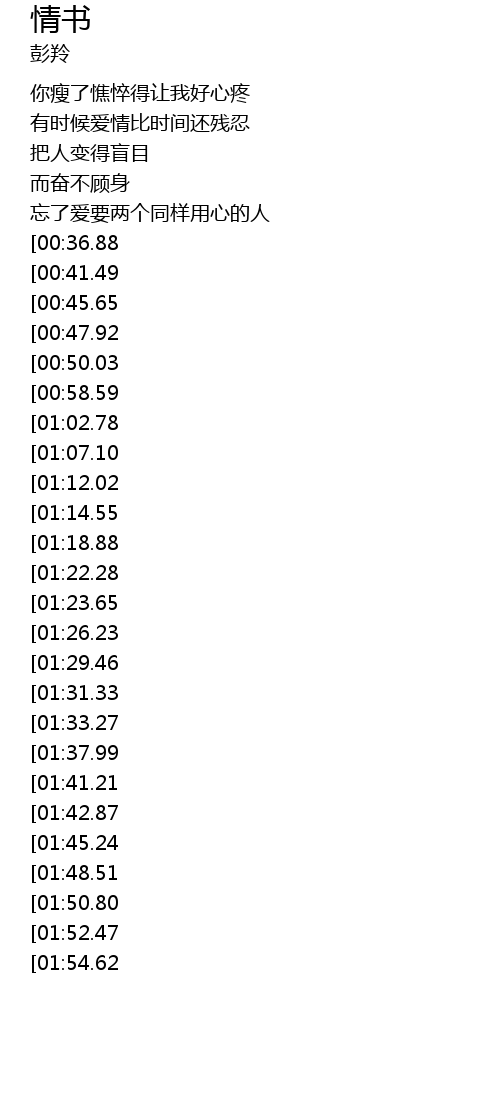 | [02:39.37][00:58.59] | 你带着他唯一写过的情书 |