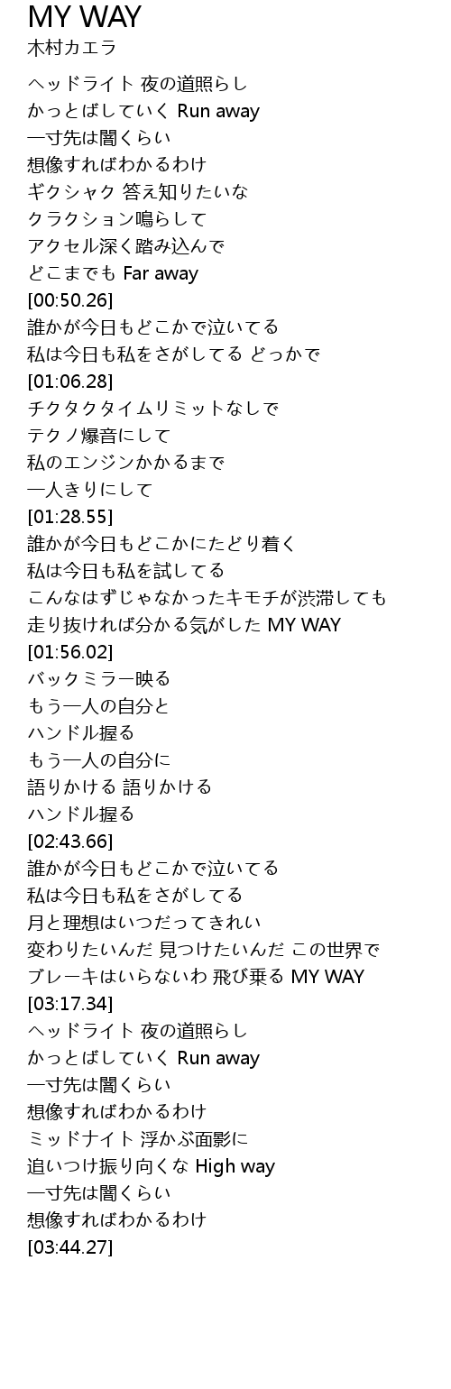 ブレーキはいらないわ 飛び乗る MY WAY |