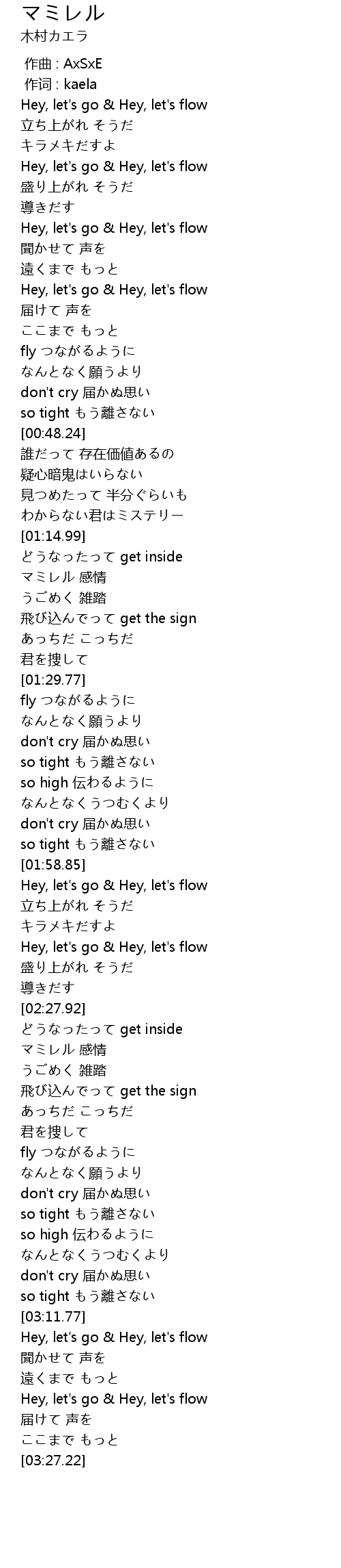 | [03:12.01] | Hey, let's go & Hey, let's flow |