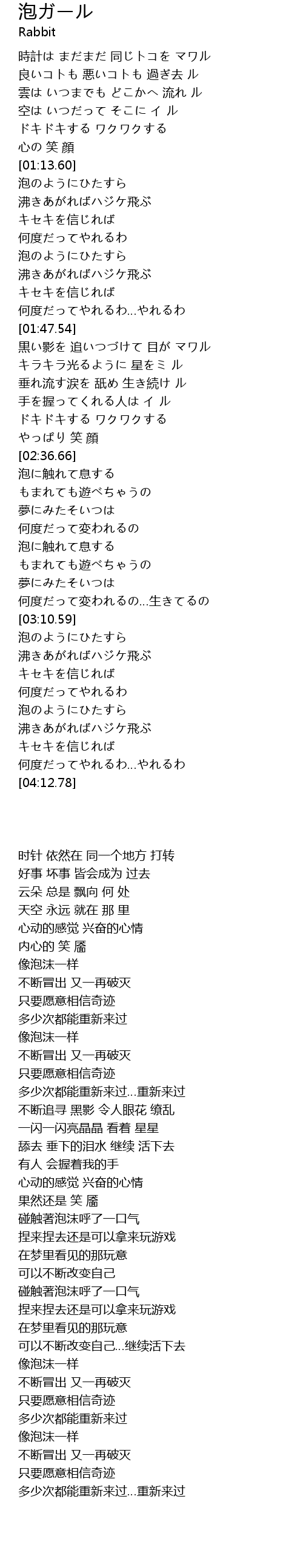 | [01:14.37] | 泡のようにひたすら |