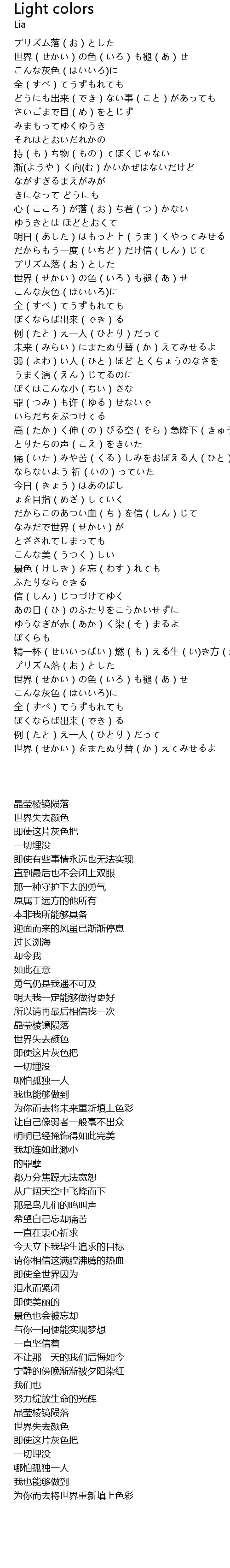 | [00:17.55] | 世界(せかい)の色(いろ)も褪(あ)せ |