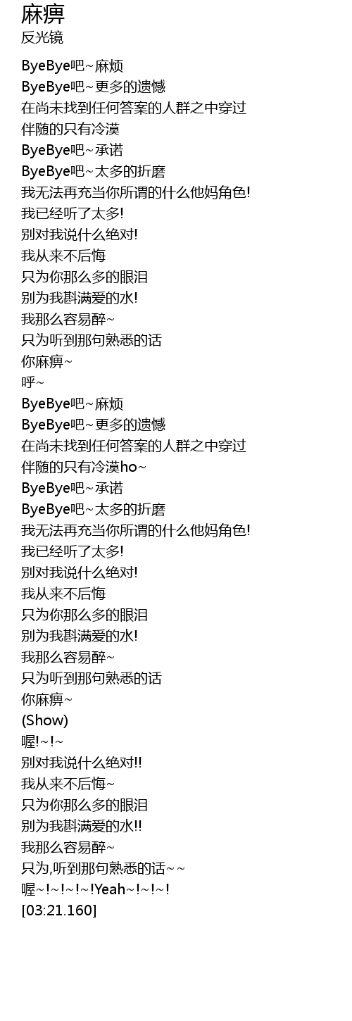 | [00:06.110] | ByeBye吧~更多的遗憾 |