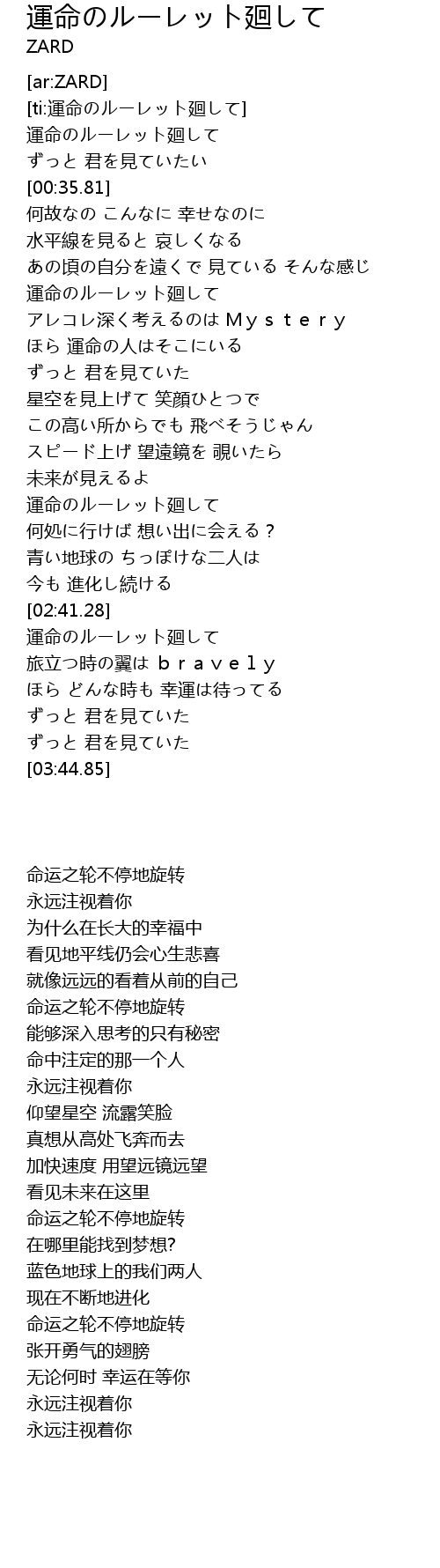 | [03:03.76] | 運命のルーレット廻して |