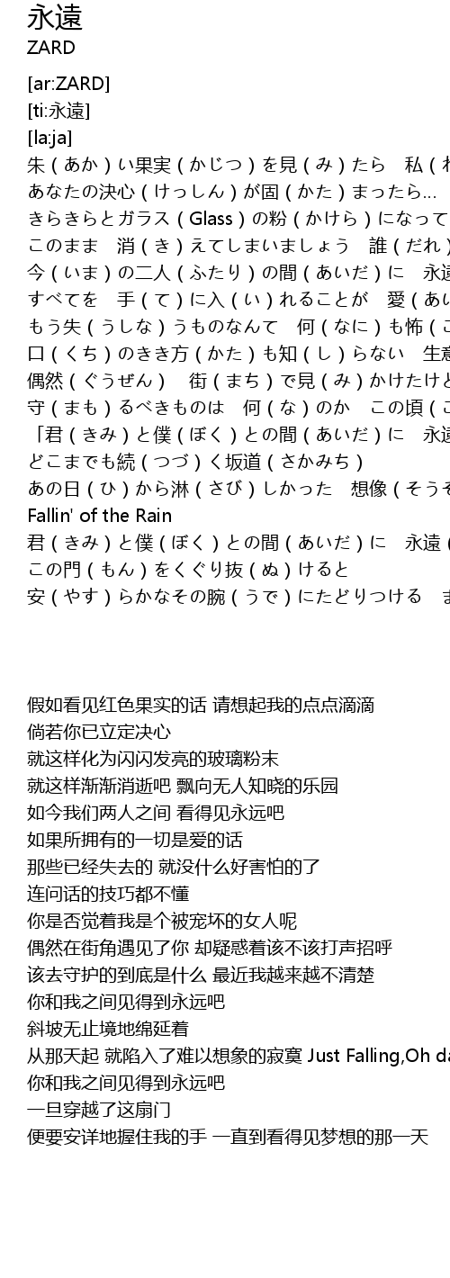 | [02:21.73] | ri lin xiang xiang yi shang Just Fallin' of the Rain |