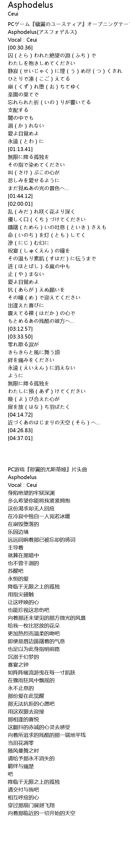 | [00:08.12] | Asphodelus(アスフォデルス) |