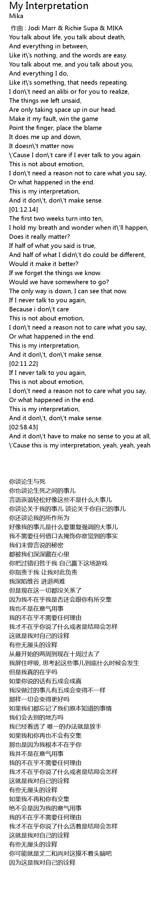 | [00:00.00] | 作曲 : Jodi Marr & Richie Supa & MIKA |