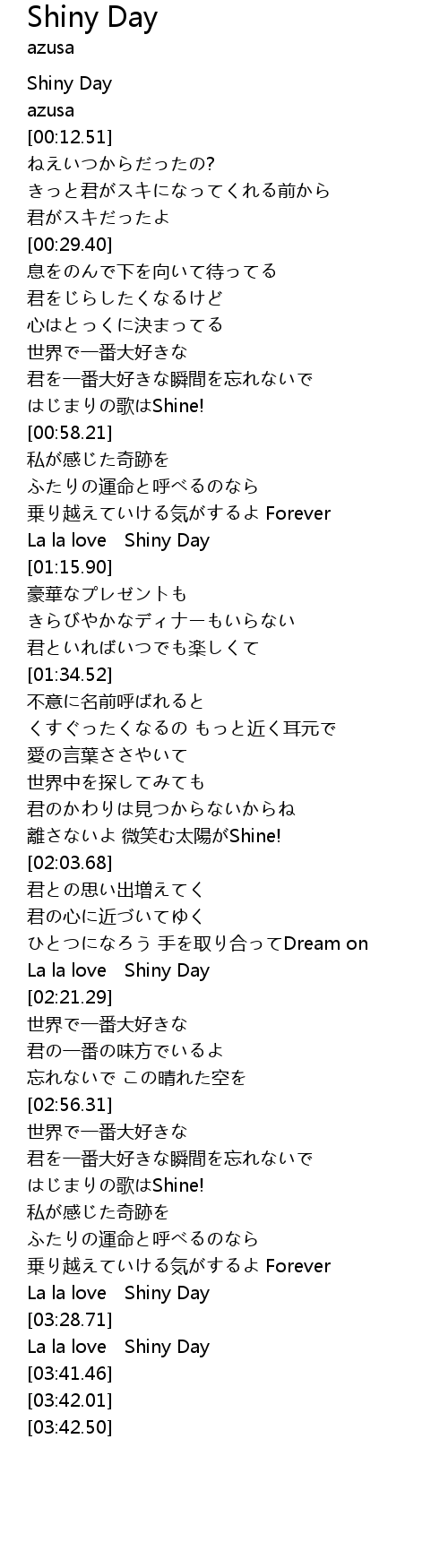 | [03:37.81] | La la love Shiny Day |