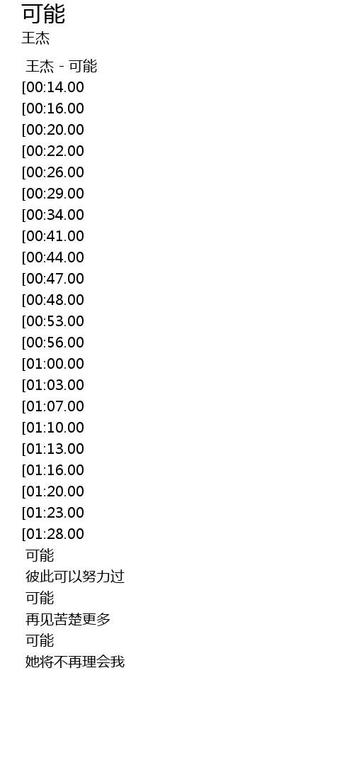 | [00:00.00] | 王杰 - 可能 |