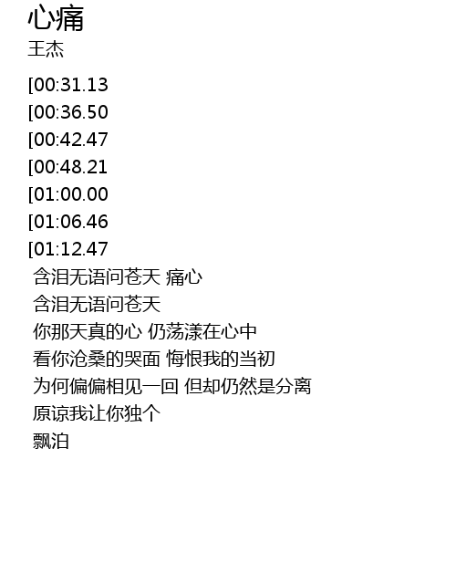 | [01:18.12] | 含泪无语问苍天 痛心 |