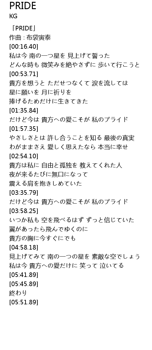 | [00:00.40] | 「PRIDE」 |