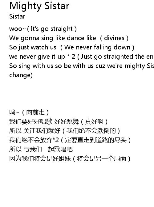 | [00:28.290] | So sing with us so be with us cuz we' re mighty Sister There a change |