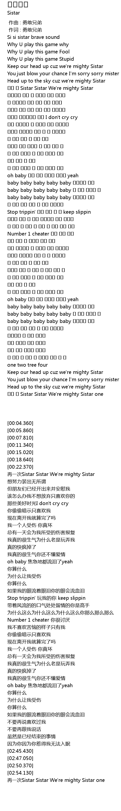 | [02:47.050] | Keep our head up cuz we're mighty Sistar |