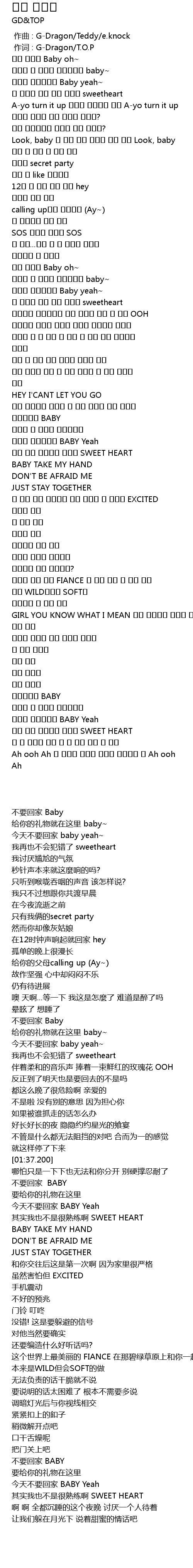 | [00:01.00] | 作词 : G-Dragon/T.O.P |