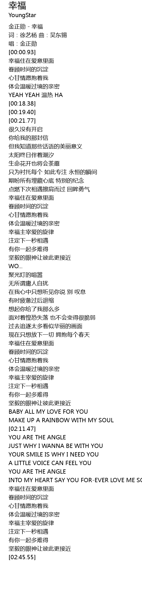 | [00:00.28] | 金正勋 - 幸福 |