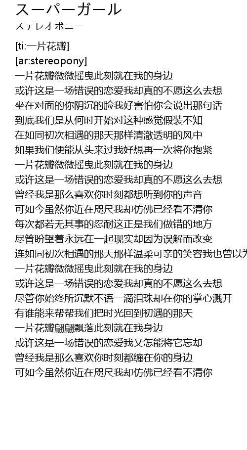 | [02:52.24] | 一片花瓣翩翩飘落此刻就在我身边 |