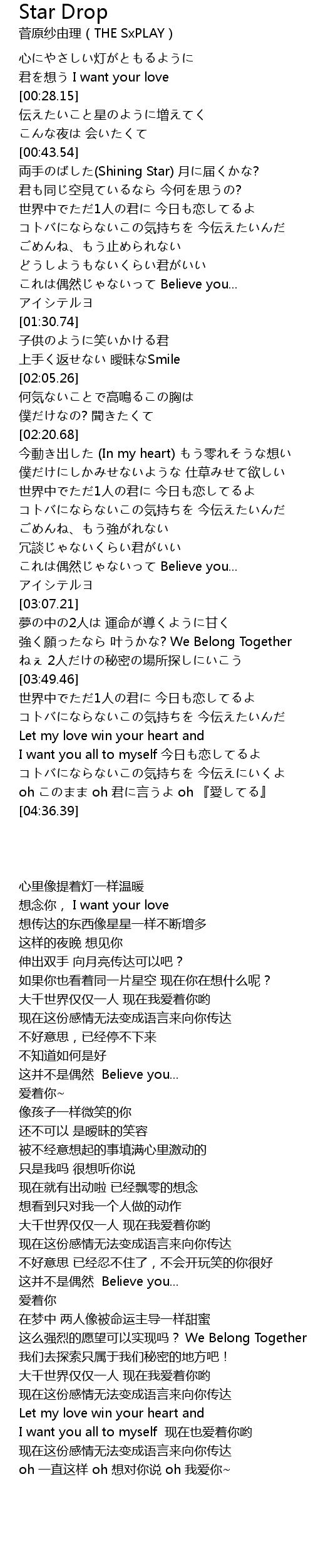 | [00:31.48] | 伝えたいこと星のように増えてく |