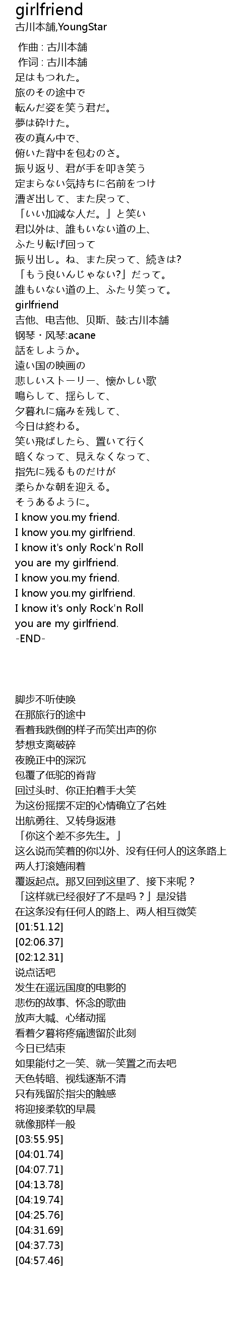 | [02:06.37] | 吉他、电吉他、贝斯、鼓:古川本舗 |